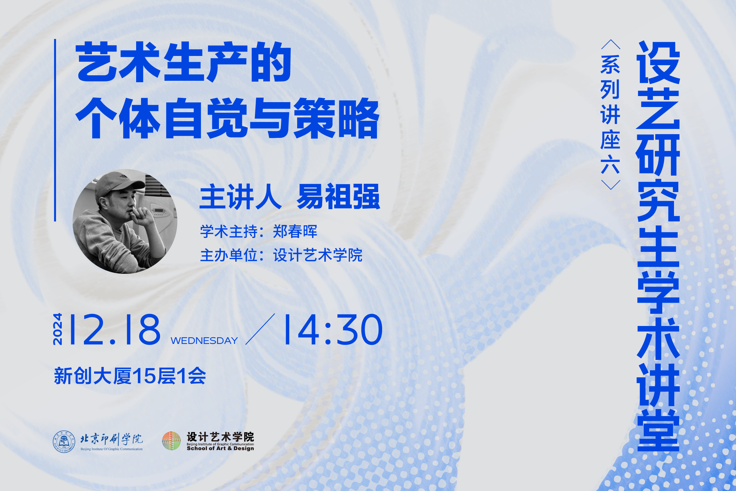 主讲人:易祖强,中央美术学院设计学博士、艺术学理论博士后,上海大学上海美术学院字体工作室特聘研究员,中国青少年新媒体协会理事。现任教于北京电影学院美术学院。